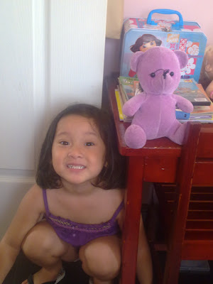 You’re probably wondering who is Violet. My friend Faye‘s daughter Maia loves her Georgie, Baby Bop has her yellow blankie while Kelsea has her fave dear teddy we named Violet. Where did Violet came from? Violet is actually mine 🙂 It was given to me when I was still preggy by a former well-loved lady boss as a pasalubong from Dad’s Restaurant. I think it comes with their drink if you buy one.