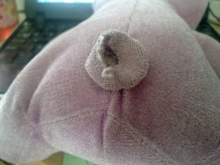 She can’t sleep without Violet and cries really hard when left in the grandparents house. This cute teddy must always be by her side especially when drinking milk because she loves touching the tail.