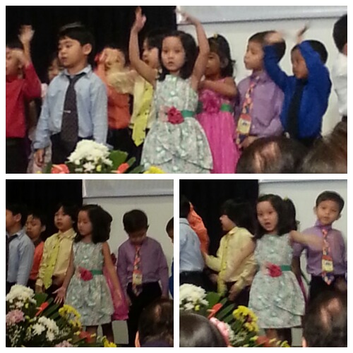 I was also looking forward to the presentation they were practicing for months. Sorry for the blurred shots but these were the Nursery and Kinder students singing the song Proud of You by Fiona Fung.