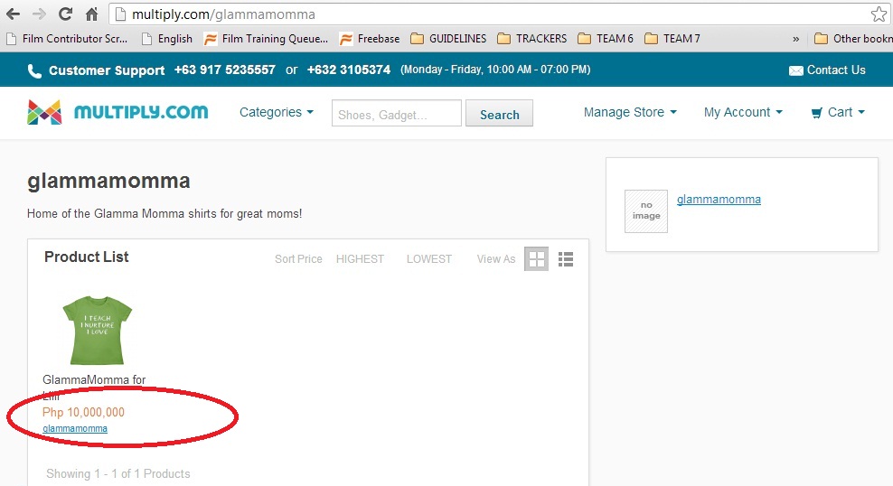 Have you also noticed the encircled price of the shirt I’m selling? It’s worth Php10M. I wonder how they did that. Nobody would buy a shirt that expensive.