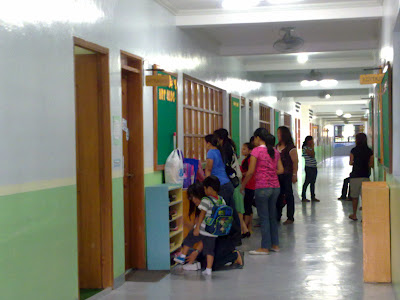 We arrived early but so did the others. Not all kids have their uniform yet including Kelsea. Before entering the room, footwear must be left outside and put in the shoe cabinet. They were required to wear white shoes inside the classroom. Aside from that, each student must have a persona kit. It is a plastic box where they must have their own cologne, powder, face towel, toothbrush, toothpaste, extra undies and extra clothes. We put hers in the cubby hole assigned to her.