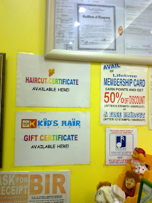 I also learned from the receptionist that parents can buy a 1st Haircut Certificate where the hair of the kid will be put in a clear plastic and attached to the certificate with the child’s name. Their membership card also earns points and gives your child a discount or free haircut after a number of stamps.