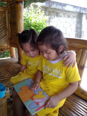 Kelsea will share her book with N and pretend telling a story. Then they would carry their small backpacks and pretend going to school. They look so cute conversing as if they’re adults. By the way, the kubo in the picture above is where mommies and yayas stay while waiting for their child or alaga.