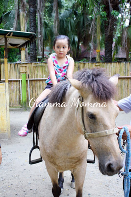 The first time Kelsea rode on a horse in Baguio, it made her cry out loud. She was so scared and kept telling how stinky the horse is. But she surprised us (after seeing her best friend ride the horse) in the zoo when she volunteered riding on the horse. Maybe because that horse is not stinky or maybe she’s now braver ๐ Kelsea and I were allowed to ride on the horse, with Mark standing beside, for a photo op. But only kids are allowed to ride on a semi-running/walking horse.