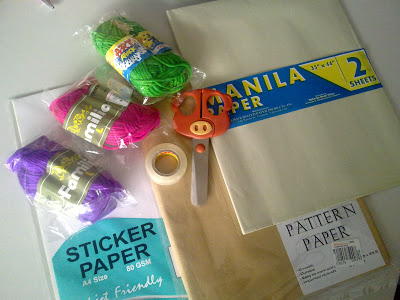 - Colorful yarns (Php 13.50/pack) – I didn’t see a red yarn that time in National Bookstore so I settled for green, fuchsia pink and violet.